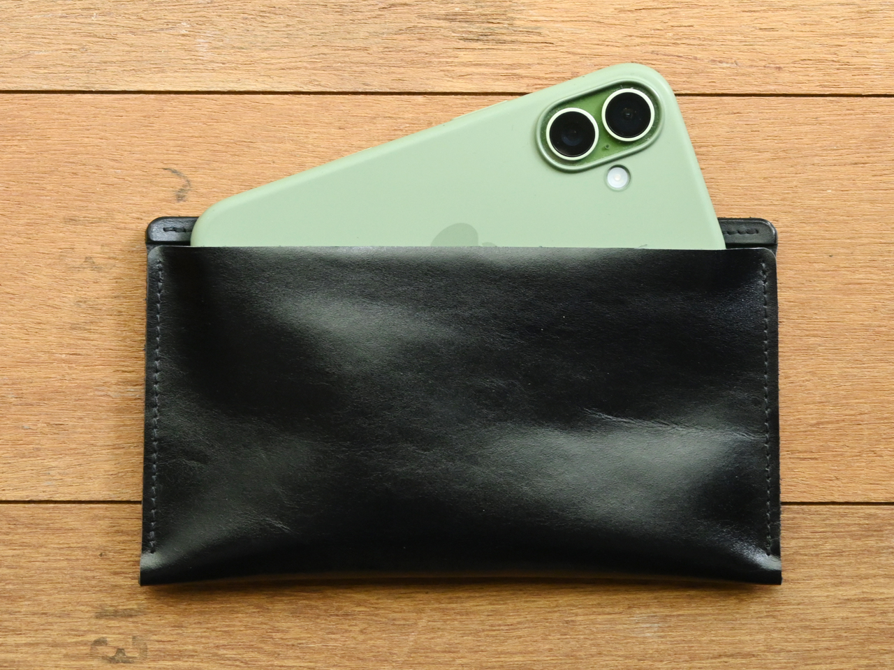 此款真皮手機套在設計時會保留適當空隙以方便手機抽取,適用一般保護殼或是裸機,非常厚的保護殼可能不適合搭配使用